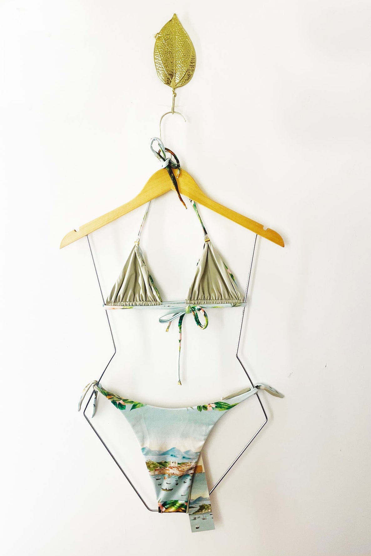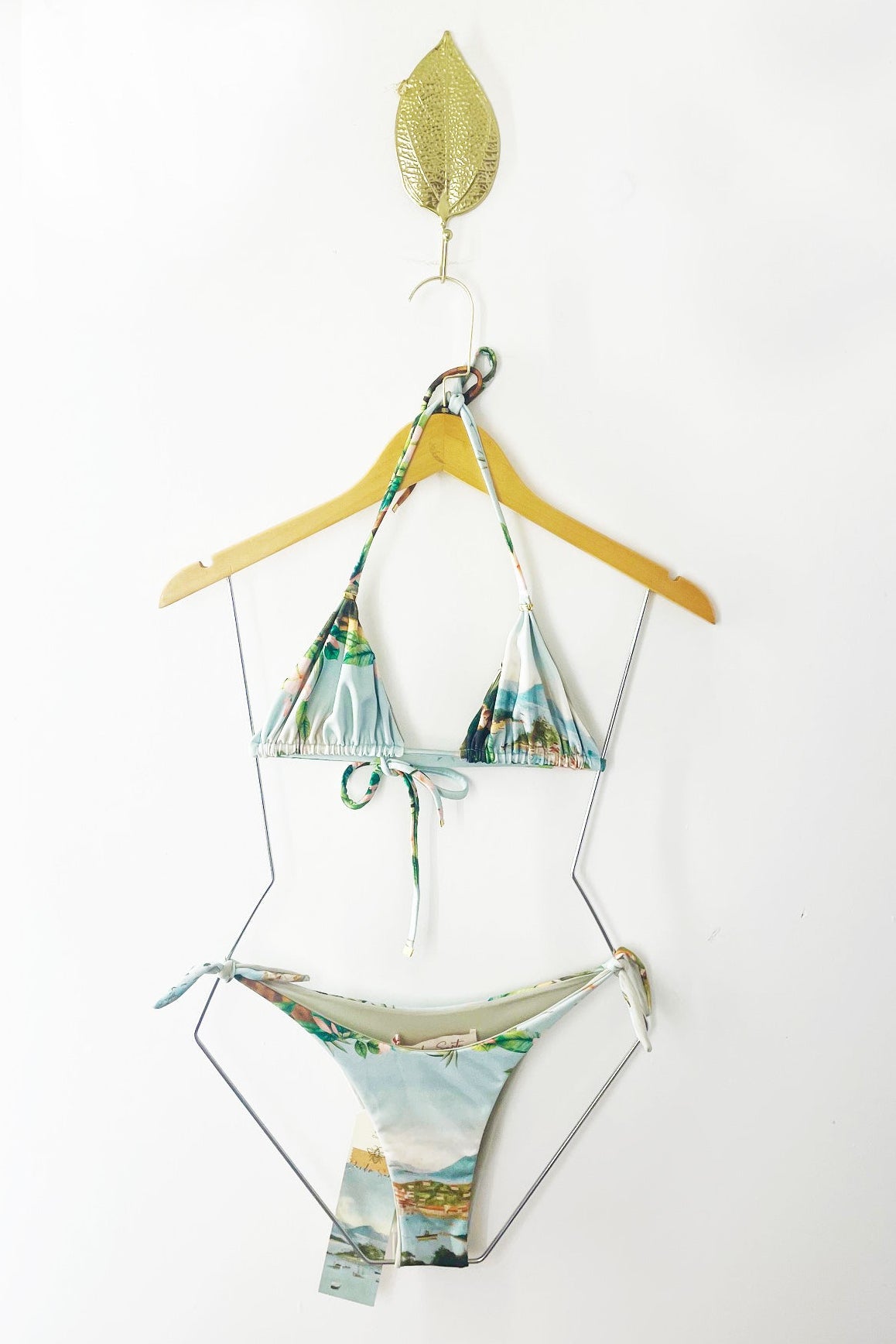 Nosso Biquini Nozinho, de modelagem menor, na estampa Floripa! A estampa foi inspirada na pintura do século XIX da cidade de Florianópolis, onde nossa marca nasceu.