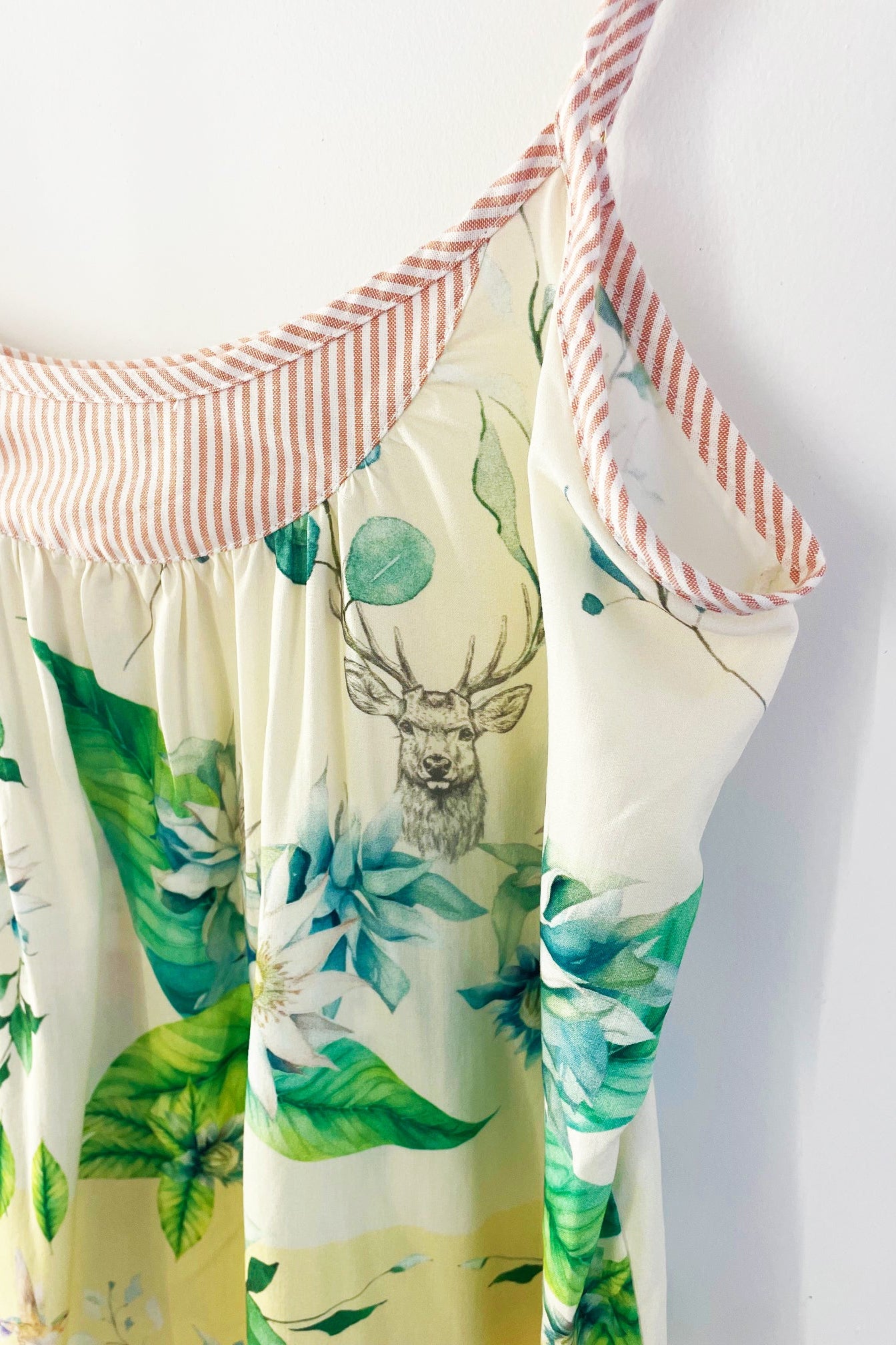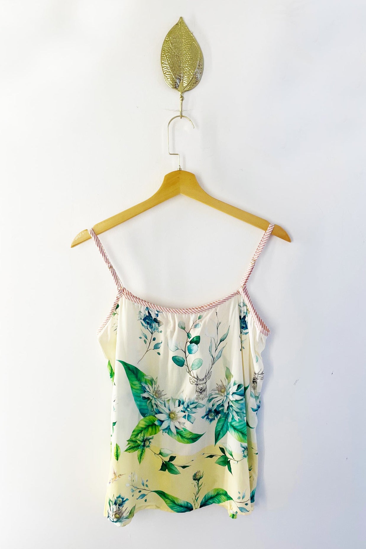 Nossas Regatas Alcinhas são as blusas mais fresquinhas que você vai ter para o verão! Com uma modelagem bem confortável, levemente solta, valoriza as curvaturas femininas sem marcar nada! Aqui na nossa delicada Estampa Edelweiss com detalhe em listrinhas no decote.