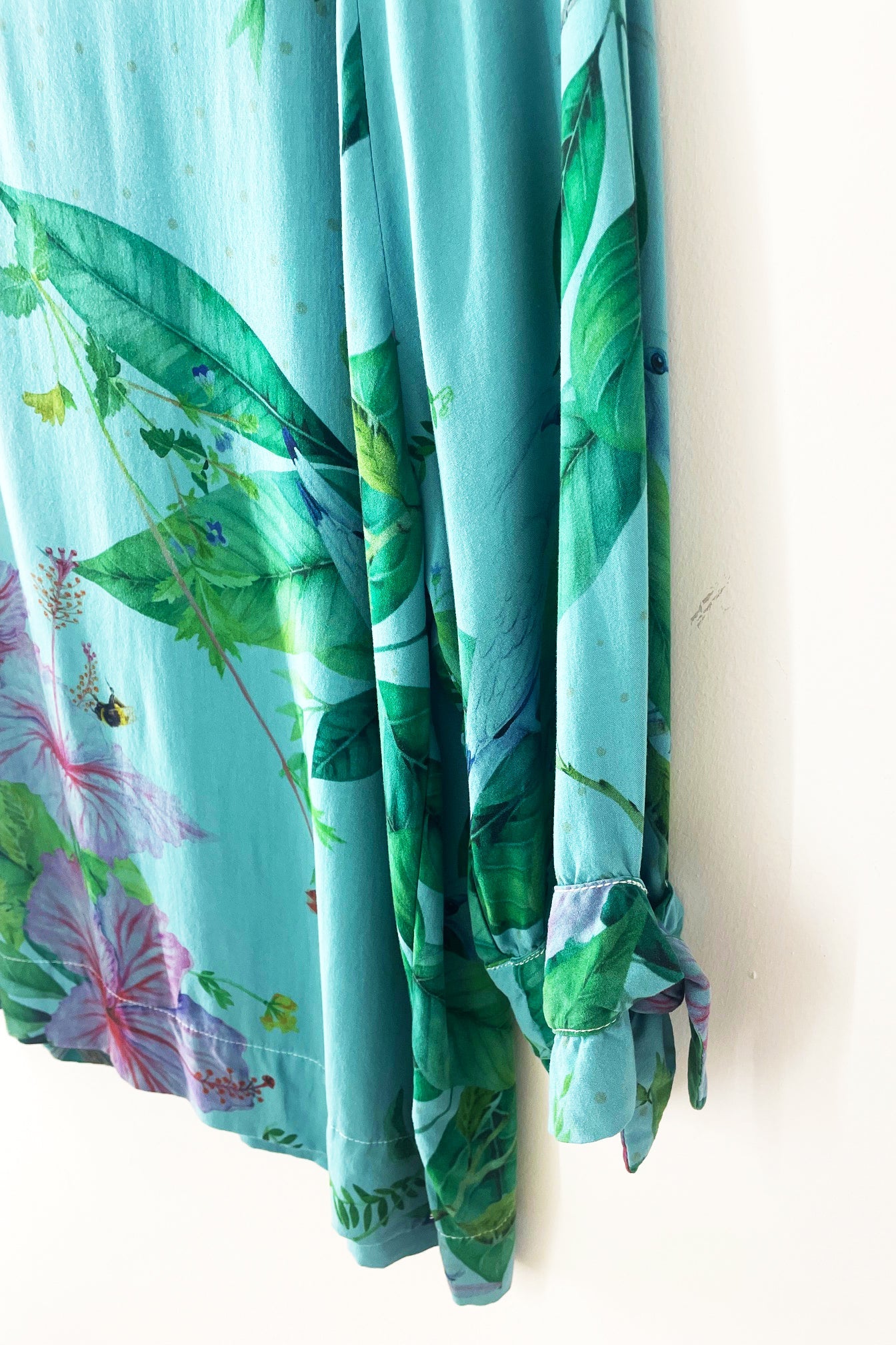 Simples e versátil, a Blusa Nó tem manga 3/4 com um nozinho que pode ficar mais apertado e subir para cima do cotovelo para dias mais quentes. Modelagem ampla e confortável. Aqui em nossa delicada estampa tingida na cor azul céu.