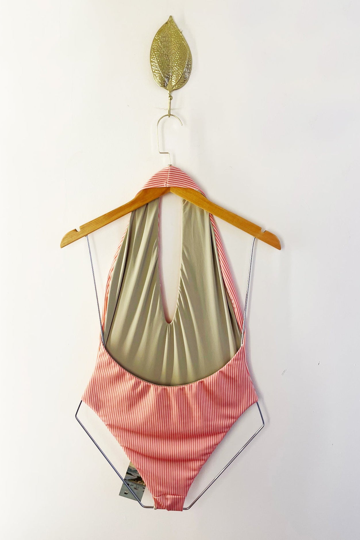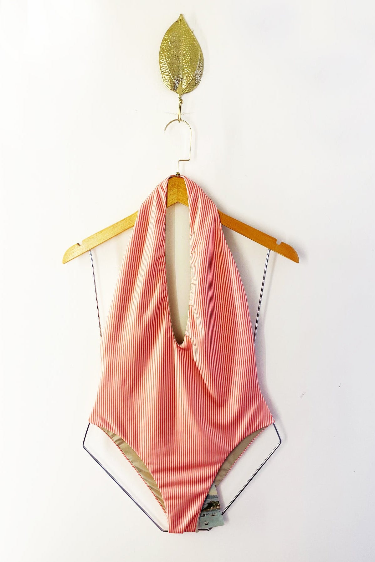 Nosso Maiô é todo duplo e além de servir como body e ficar incrível com nossas Pantalonas, também pode ser usado dos dois lados (é só tirar a etiqueta!). Suuuuuper confortável e com decote V cavado. Aqui na delicada estampa das listrinhas na cor coral que amamos! Ótimo com nossos Quimonos.