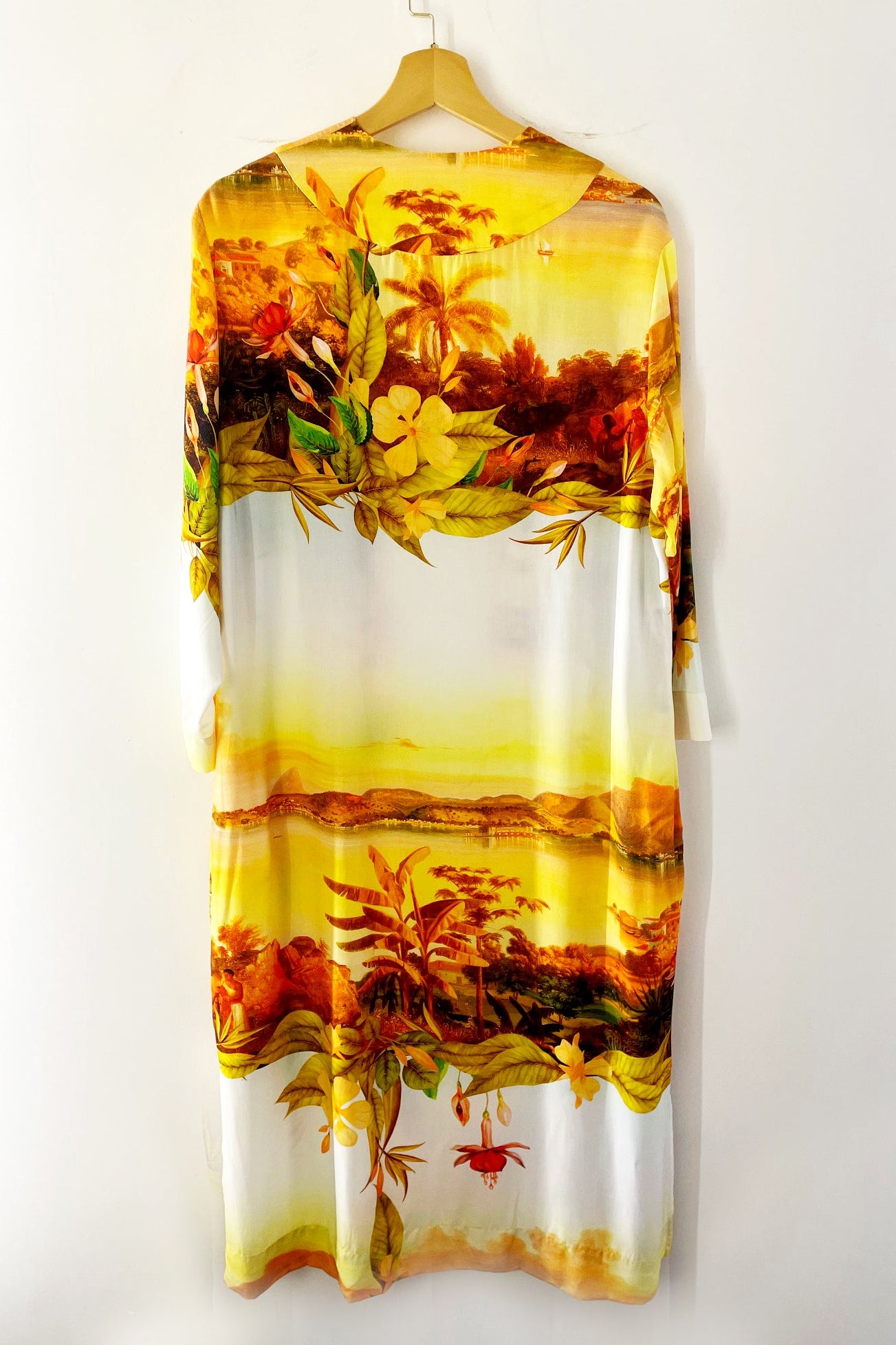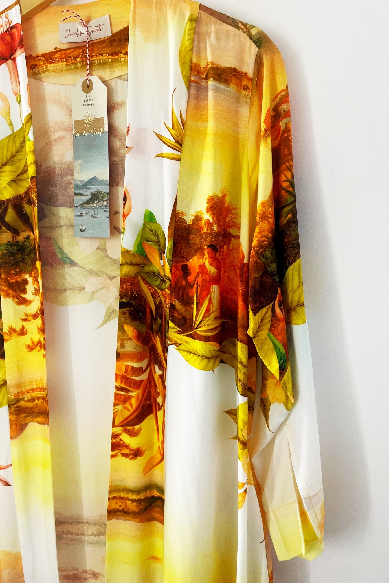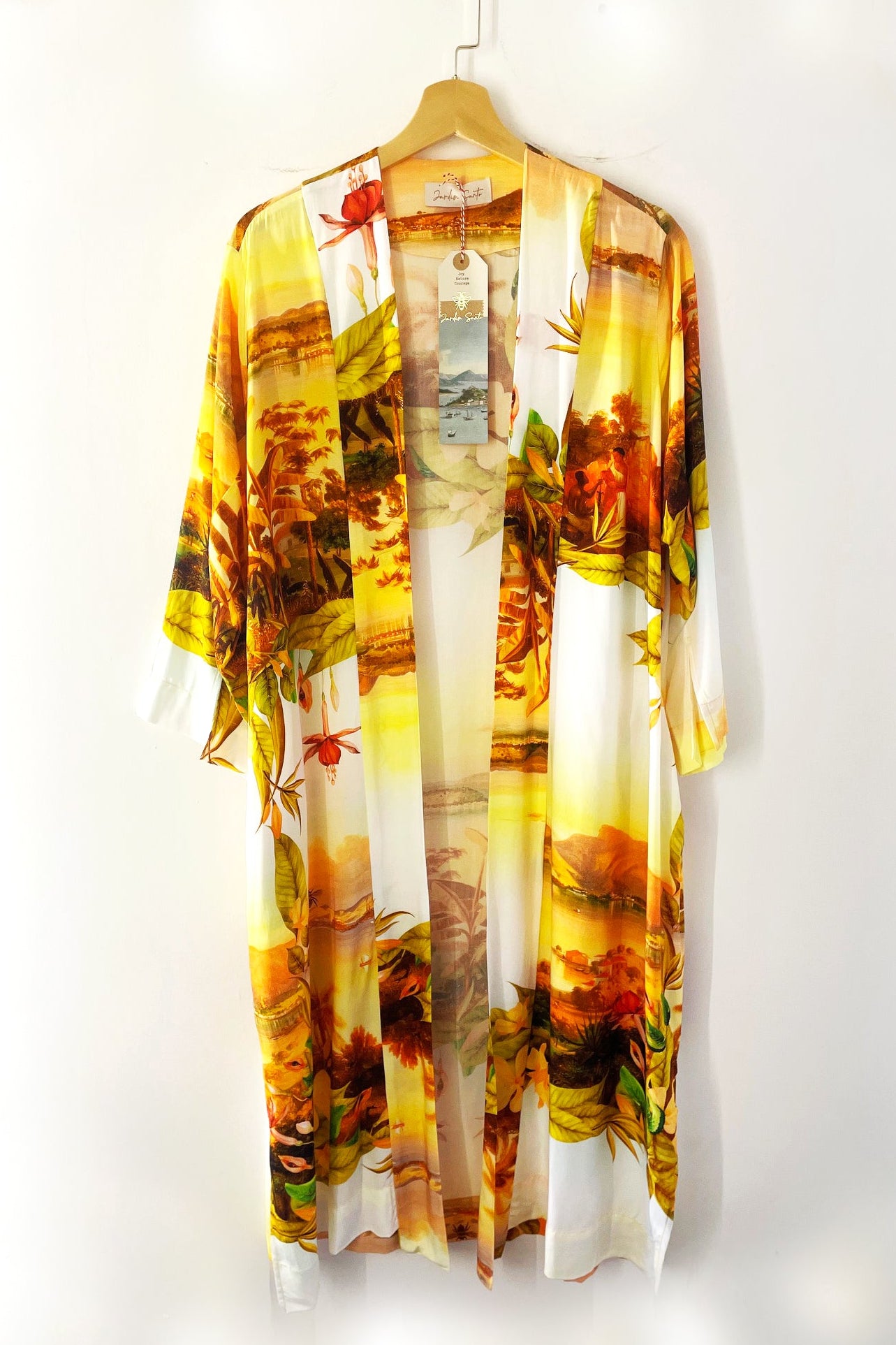 O Quimono Rio tem uma modelagem sofisticada com pequenos detalhes e bolsos que fazem toda a diferença! A estampa é exclusiva e cheia de autenticidade inspirada na pintura do Rio de Janeiro do século XIX de pintor italiano em combinação com nossas flores e folhas.